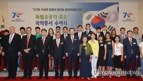 (서울=연합뉴스) 최송아 기자 = 법무부는 제70주년 광복절을 앞두고 독립유공자의 후손들에게 12일 대한민국 국적을 부여했다.