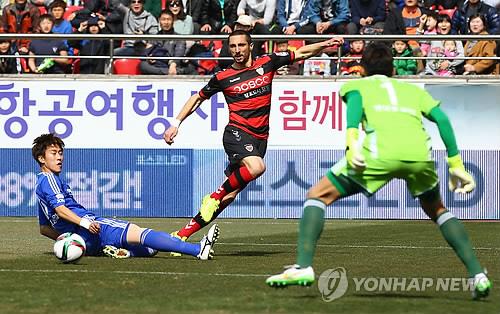 (인천=연합뉴스) 차병섭 기자 = 프로축구 포항 스틸러스는 2주만에 재개된 K리그 경기에서 개막전에서와 같이 외국인 선수 라자르를 원톱으로 기용하는 실험을 재개했다.