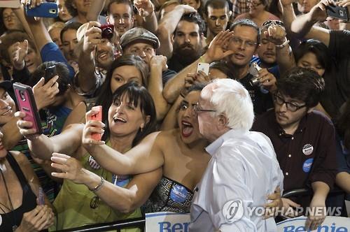 '민주적 사회주의자'를 자처하는 샌더스 의원은 12일(현지시간) 미국 뉴햄프셔 주 여론조사에서 44%의 지지율로 클린턴 전 장관(37%)을 처음으로 제쳐 자신의 인기가 '미풍'이 아닌 '돌풍'임을 알렸다.