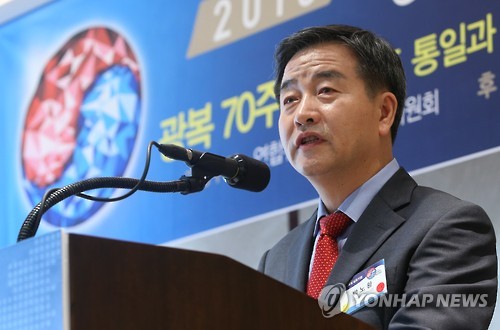 | △ '한반도통일 심포지엄' 환영사하는 박노황 연합뉴스 사장 (서울=연합뉴스) 김주성 기자 = 박노황 연합뉴스 사장이 13일 오전 서울 중구 웨스틴조선호텔에서 광복 70주년을 맞아 열린 '2015 한반도통일 심포지엄' 오찬에서 환영사를 하고 있다. '한반도 통일과 남북 경제의 나아갈 길'을 주제로 열린 이번 심포지엄은 국가기간통신사인 연합뉴스가 대통령 직속 통일준비위원회와 공동으로 주최했다. '북한의 미래와 우리의 통일 정책', '한반도 통일과 남북 경제협력', '분단 70년과 한반도 미래' 등 3개 세션으로 구성된 이번 심포지엄에는 최고 수준의 석학과 전문가들이 참석해 한반도 정세를 진단하고 통일 전략과 방안에 대해 열띤 토론을 벌인다. |