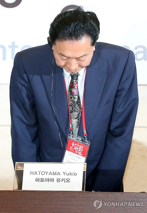 하토야마 전 총리는 이날 동아시아평화국제회의 조직위원회와 서울시, 경기도가 서울 대한상공회의소에서 개최한 '2015 동아시아평화국제회의'에서 '역사적 사실을 직시하며 동아시아 공동체의 구축으로'라는 주제로 기조연설을 했다.