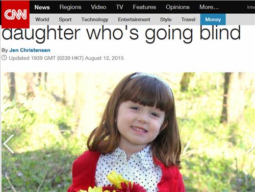 12일(현지시간) CNN방송에 따르면 미국 오하이오 주에 사는 리지 마이어스(5)는 어셔 증후군 때문에 5년 정도 뒤에는 보지도 듣지도 못하게 된다.