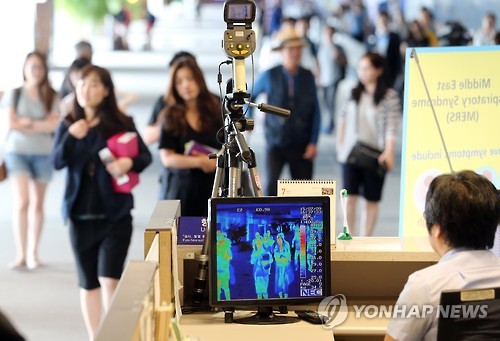 | △ 지난 달 9일 인천국제공항에서 검역소 직원들이 홍콩발 항공기를 통해 입국한 승객들의 체온을 체크하고 있다. (연합뉴스 자료사진) |
