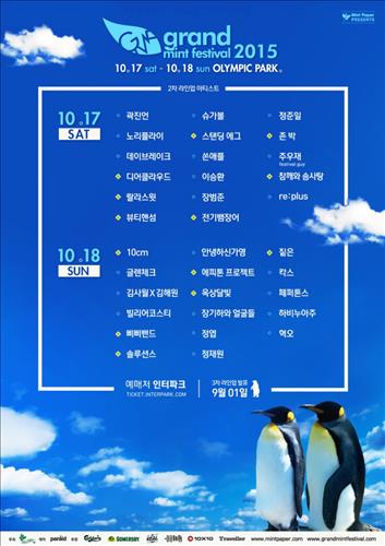 또 십센치, 존박, 에피톤프로젝트, 스탠딩에그, 짙은, 디어클라우드, 옥상달빛, 랄라스윗 등 '그랜드 민트 페스티벌'의 단골 아티스트도 라인업에 이름을 올렸다.