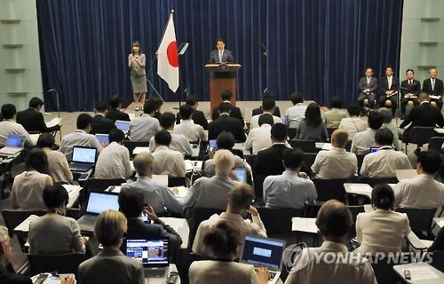 | △ 전후 70년 담화 발표하는 아베 일본 총리 (도쿄 교도=연합뉴스) 아베 신조(安倍晋三) 일본 총리가 14일 오후 도쿄 총리관저에서 일본의 전후 70년에 관한 역사인식을 반영한 담화(일명 아베 담화)를 발표하고 있다. 2015.8.14 sewonlee@yna.co.kr |