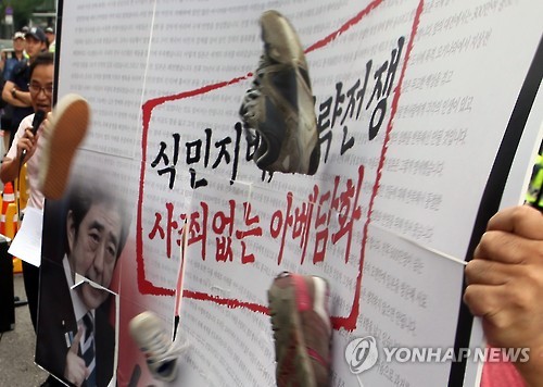 한대련 등은 전날 아베 신조(安倍晋三) 일본 총리의 '과거형 사죄' 담화를 비판하면서 "전범국 일본이 평화헌법 정신을 무시하고 군국주의 부활과 재무장을 추진하는 것을 용납할 수 없다"며 "일본은 우리 민족 앞에 진심으로 사죄하고, 식민지배 청산을 위해 진정어린 노력을 다하라"고 촉구했다.