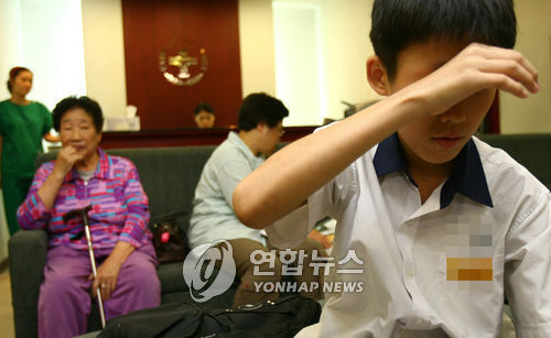 | △ 서울의 한 안과에서 유행성 눈병에 걸린 한 중학생이 진료를 기다리고 있다.(연합뉴스 자료사진) |