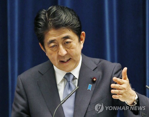 | △ 日 전후 70년 담화 발표…회견하는 아베 (도쿄 교도=연합뉴스) 아베 신조(安倍晋三) 일본 총리가 14일 오후 도쿄 총리관저에서 일본의 전후 70년에 관한 담화(일명 아베 담화)를 발표하고 나서 질문에 답하고 있다. |