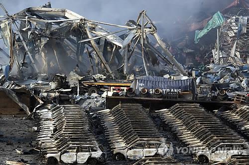 | △ (톈진 AP=연합뉴스) 13일(현지시각) 폭발사고가 일어난 중국 동북부 톈진항. 창고 철골이 마치 엿가락처럼 휘어지고 주차장에 세워놓았던 새 차들이 순식간에 타버렸다. ciy@yna.co.kr |