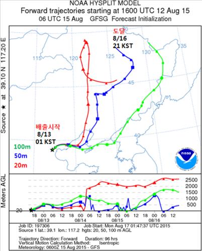 환경부는 "12일 톈진 폭발 사고 이후 바람 방향은 주로 남서풍·동풍 계열이 우세해 대부분 한반도의 영향권 밖인 만주 쪽으로 이동했다"고 말했다.