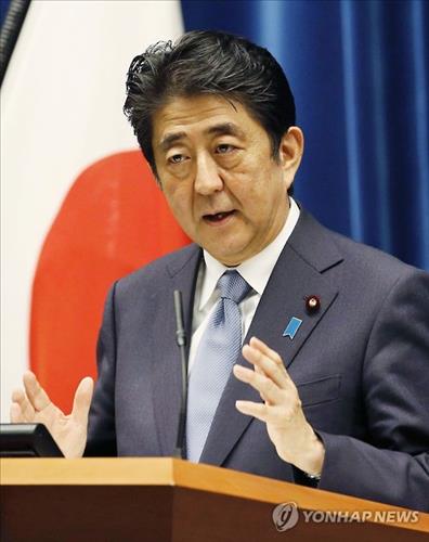 | △ (도쿄 교도=연합뉴스) 아베 신조(安倍晋三) 일본 총리가 2015년 8월 14일 오후 도쿄 총리관저에서 일본의 전후 70년에 관한 담화(일명 아베 담화)를 발표하고 나서 질문에 답하고 있다. |