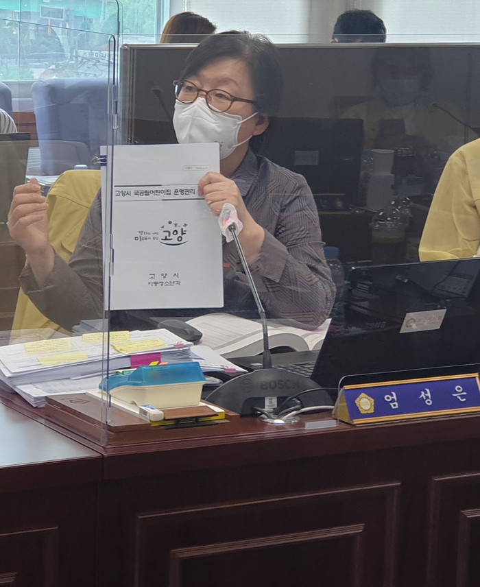지난 15일 고양시의회에 따르면 국민의힘 엄성은 의원은 전날 열린 구청행정사무감사에서 "40인 이상 민간어린이집 급식정산서류가 품목에 맞지않는 물품을 구비하는 등 기본적인 원칙이 지켜지지 않았다"고 지적했다.