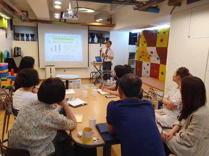 한편 MOU 전 임홍빈 교육부공익법인 사)한국안정교육협회│안전교육운동본부 교육이사가 지니어스박스 임직원 대상으로 협회소개와 안전교육사운드북 등에 대한 교육을 진행하였다.