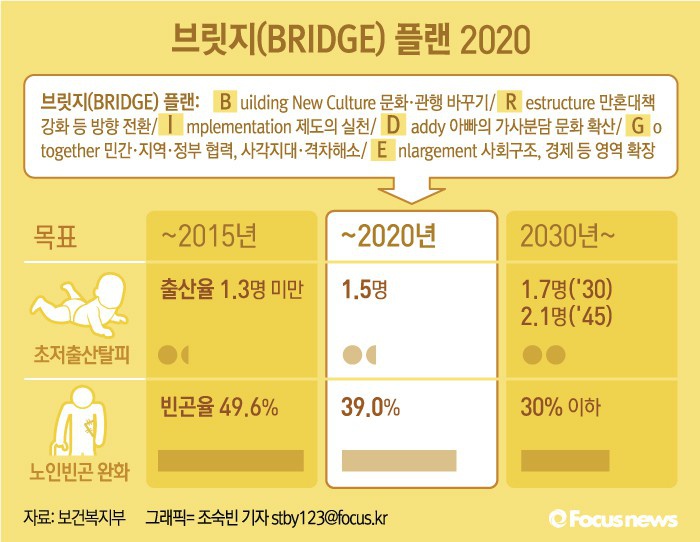 그간 저출산 극복을 위해 국가책임보육, 다양한 일·가정 양립 제도 등을 도입해 출산율 하락 추세가 일정부분 반등(2005년 1.08명→2014년 1.21명)했지만, 만혼·비혼 추세 심화, 취업모의 낮은 출산율 등으로 정책효과는 한계를 보였다.