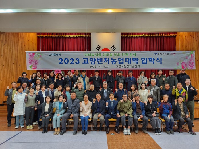 [부자동네타임즈 김인수기자] 고양시(시장 이동환)는 지난 4월 12일 미래농업을 선도해 갈 창의 인재 양성을 위해 제17기 고양벤처농업대학 입학식을 개최했다.