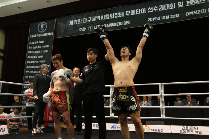 1라운드 펀치에 의한 대구 미르체육관 선수 1분50초 훅으로 k.o승을 거두었다.