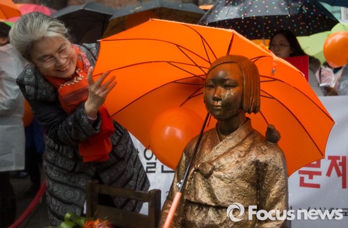 이어 "어제 장관께서도 언급했듯 최근 한·일 관계가 어떤 방향성을 갖고 나아가고 있는 상황인데 이러한 검증기구에서의 역사수정주의 흐름, 이런 것은 있어서는 안 되겠다"며 "만약 그런 방향으로 움직인다면 우리를 비롯해서 주변국 그리고 국제사회의 반발이 있을 것으로 예상한다"고 덧붙였다.정부는 24일 일본 언론의 '위안부 문제 마무리 협의' 보도에 대해 "아는 바가 없다"며 부인했다. 사진은 12월 2일 오후 서울 종로구 옛 주한일본대사관 앞 '제1207차 일본군 위안부 문제해결을 위한 정기 수요시위' 집회에서 한 참석자가 소녀상에게 우산을 씌어주는 장면. 2015.12.02 김흥구 기자