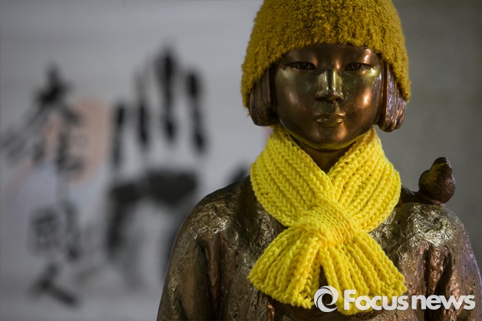 한편 일본 정부는 위안부 문제 합의를 조건으로 서울 일본 대사관 앞 소녀상 철거와 세계기록유산 등재 신청 보류를 요구한 바 있다.(서울=포커스뉴스) 한일 외교장관이 회담을 열어 일본군 위안부 문제를 극적으로 타결지은 28일 오후 서울 종로구 주한 일본대사관 앞에 세워진 소녀상이 자리를 지키고 있다. 2015.12.28 김흥구 기자
