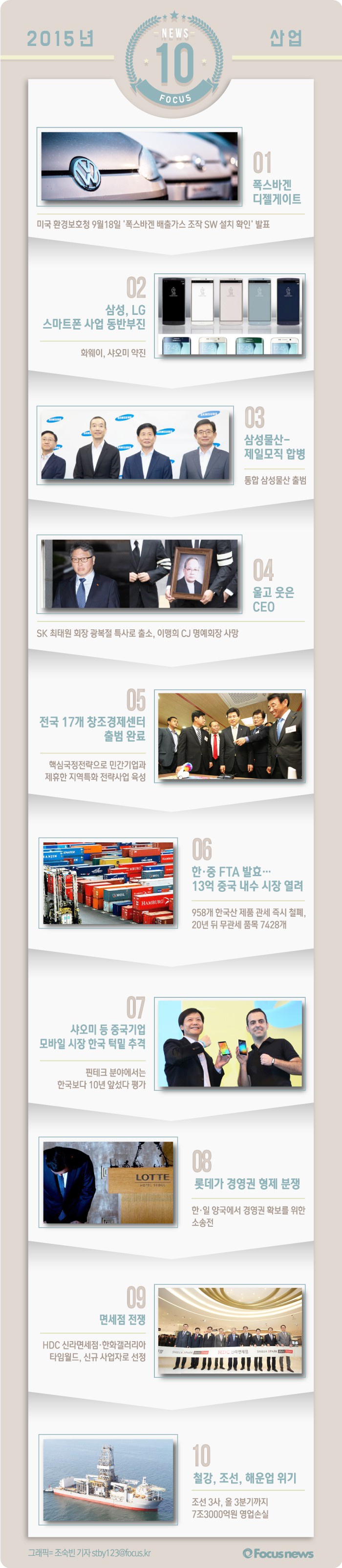 (서울=포커스뉴스) 산업계는 올해도 다사다난한 한 해를 보냈다. 미국 환경보호청이 폭스바겐 배출가스 조작파문을 공개해 전 세계를 놀라게 했고, 국내에서는 롯데그룹 형제간의 경영권 분쟁과 삼성물산-제일모직 합병이 핵심 이슈로 떠올랐다.