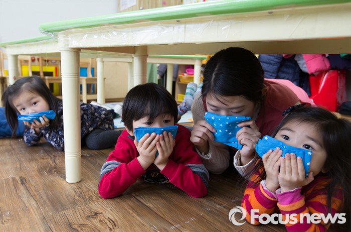방문규 차관은 “일·가정 양립지원을 위한 맞춤형 보육·양육 환경을 조성함과 더불어, 믿고 맡길 수 있는 어린이집을 확대하는 방향으로 2016년 보육정책을 추진해 나가겠다”고 말했다.(대전=포커스뉴스) 지난 22일 새벽 규모 3.9의 지진이 발생한 전북 익산에서 모두 3차례의 여진이 관측된 가운데 23일 오전 대전 서구청 어린이집에서 원생들이 지진 대피요령을 교육받고 있다. 2015.12.23 김기태 기자