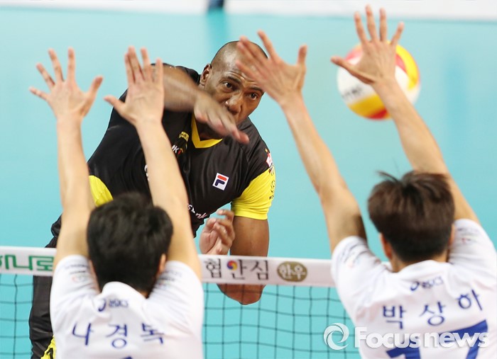 (서울=포커스뉴스) 시몬이 트리플크라운을 기록하며 맹활약한 OK저축은행이 외국인선수 없이 경기를 치른 우리카드를 세트스코어 3-1(25-17 22-25 25-14 25-23)로 물리치며 1위를 질주했다.
