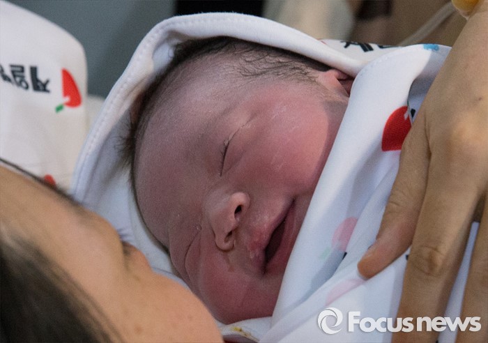 (서울=포커스뉴스) 2016년 병신년(丙申年) 새해가 밝은 1일 새벽 서울 중구 제일병원에서 윤형섭 씨와 권남희 씨 사이에서 3.28kg의 건강한 딸 '꼬미'(태명)가 태어나서 엄마를 향해 미소 짓고 있다.