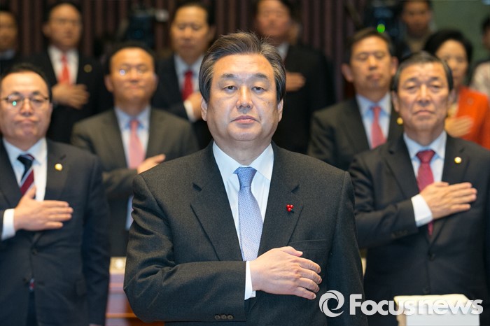 | △ 국민의례하는 김무성 |