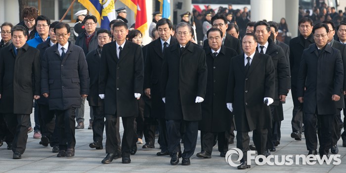 (서울=포커스뉴스) 병신년(丙申年) 새해 첫 날인 1일 오전 동작구 국립서울현충원에서 문재인 더불어민주당 대표 등 의원들이 현충탑 참배를 위해 이동하고 있다.