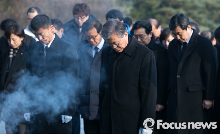 (서울=포커스뉴스) 병신년(丙申年) 새해 첫 날인 1일 오전 동작구 국립서울현충원에서 문재인 더불어민주당 대표 등 의원들이 현충탑 참배를 하고 있다.
