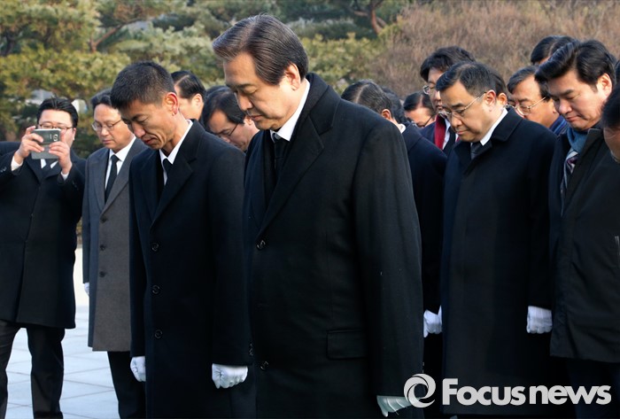 (서울=포커스뉴스) 병신년(丙申年) 새해 첫 날인 1일 오전 동작구 국립서울현충원에서 김무성 새누리당 대표 등 의원들이 현충탑 참배를 하고 있다.
