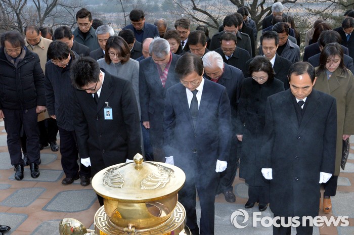 (서울=포커스뉴스) 병신년(丙申年) 새해 첫 날인 1일 오전 동작구 국립서울현충원에서 천정배 국민회의 창당준비위원장이 김대중 전 대통령 묘역 참배를 하고 있다.