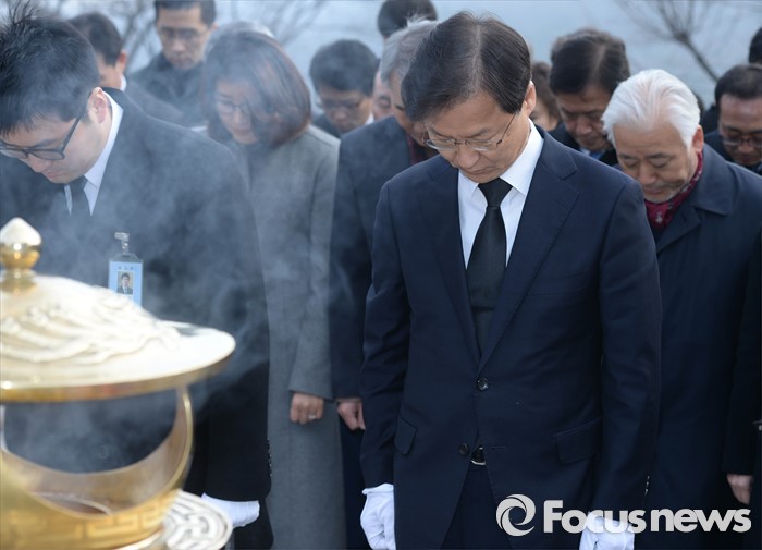 (서울=포커스뉴스) 병신년(丙申年) 새해 첫 날인 1일 오전 동작구 국립서울현충원에서 천정배 국민회의 창당준비위원장이 김대중 전 대통령 묘역 참배를 하고 있다.