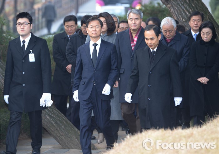 (서울=포커스뉴스) 병신년(丙申年) 새해 첫 날인 1일 오전 동작구 국립서울현충원에서 천정배 국민회의 창당준비위원장이 김대중 전 대통령 묘역 참배를 위해 이동하고 있다.
