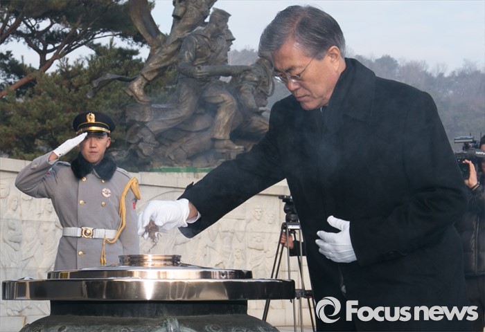 (서울=포커스뉴스) 병신년(丙申年) 새해 첫 날인 1일 오전 동작구 국립서울현충원에서 문재인 더불어민주당 대표 등 의원들이 현충탑 참배를 하고 있다.