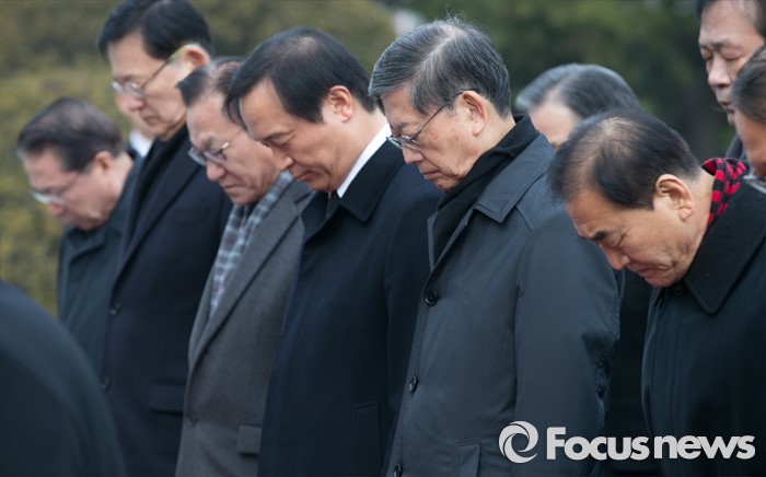 (서울=포커스뉴스) 병신년(丙申年) 새해 첫 날인 1일 오전 동작구 국립서울현충원에서 이재오 새누리당 의원, 김황식 전 국무총리 등 이명박 정부 각료들이 현충탑 참배를 하고 있다.