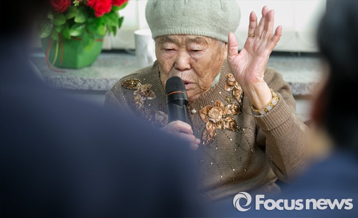 (광주=포커스뉴스) 병신년(丙申年) 새해 첫 날인 1일 오후 이옥선 할머니가 경기도 광주 일본군 위안부 피해자 쉼터 나눔의 집을 방문한 원유철 새누리당 원내대표 등 의원들과의 간담회에서 발언하고 있다.