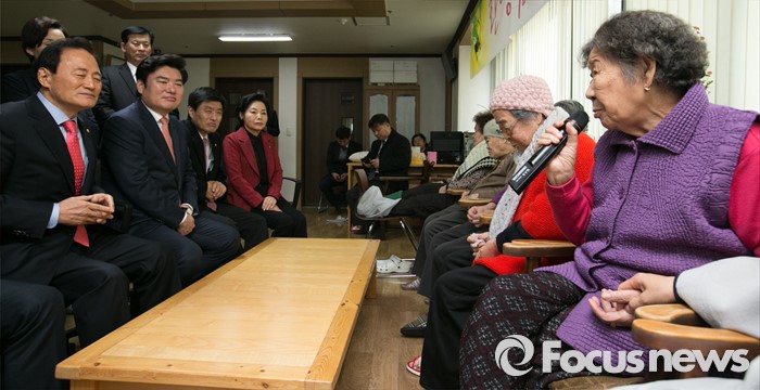(광주=포커스뉴스) 병신년(丙申年) 새해 첫 날인 1일 오후 원유철 새누리당 원내대표 등 의원들이 경기도 광주 일본군 위안부 피해자 쉼터 나눔의 집을 방문해 할머니들과 간담회를 하고 있다.