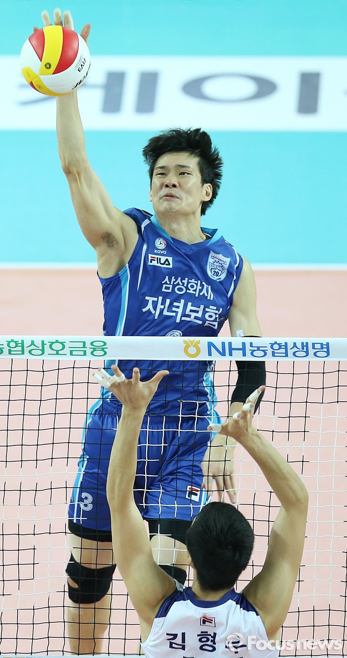 (인천=포커스뉴스) 3일 인천 계양체육관에서 열린 '2015-2016NH농협 V-리그' 남자부 대한항공-삼성화재 경기에서 삼성화재 이선규가 대한항공 김형우의 블로킹을 피해 스파이크를 하고 있다.
