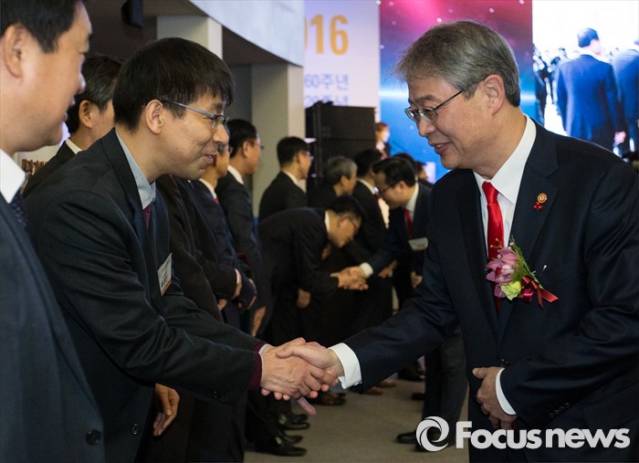 (서울=포커스뉴스) 병신년(丙申年) 새해 첫 증시 개장일인 4일 오전 영등포구 서울 여의도 거래소에서 2016년도 증권·파생상품시장 60주년 개장식 및 신년 하례식에서 내, 외빈들이 인사를 나누고 있다.