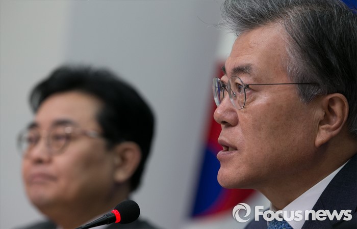(서울=포커스뉴스) 문재인 더불어민주당 대표가 4일 오전 서울 여의도 국회에서 열린 최고위원회의에 참석해 모두발언을 하고 있다.