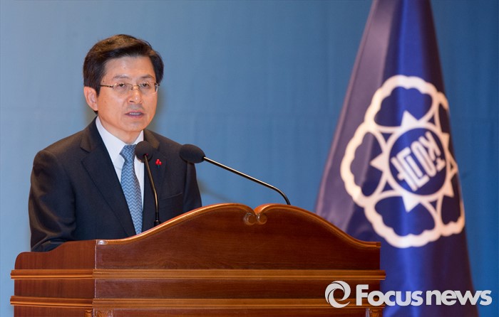 (세종=포커스뉴스) 황교안 국무총리가 4일 오전 세종시 정부세종청사 대강당에서 열린 2016년 정부시무식에 참석해 신년사를 하고 있다.