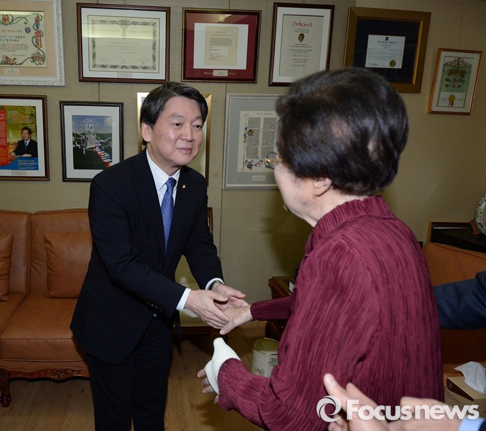 (서울=포커스뉴스) 신당 창당을 추진중인 무소속 안철수 의원이 4일 서울 동교동 고 김대중 전 대통령의 사저를 찾아 이희호 여사를 예방하고 새해 인사를 하고 있다.
