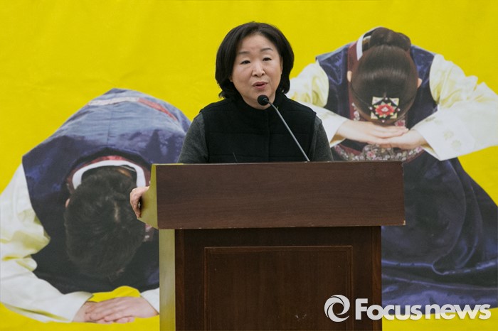 (서울=포커스뉴스) 심상정 정의당 대표가 4일 오전 서울 여의도 국회 의원회관에서 열린 용산참사·세월호유족·시민사회단체 합동 신년인사회에 참석해, 인사말을 하고 있다.