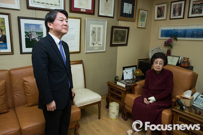 (서울=포커스뉴스) 신당을 추진 중인 안철수 무소속 의원이 4일 서울 동교동 고 김대중 전 대통령 사저를 찾아 이희호 여사를 예방하고 있다.