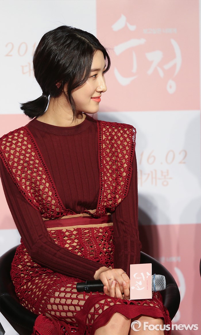 (서울=포커스뉴스) 4일 오전 서울 광진구 롯데시네마 건대입구점에서 열린 영화 '순정' 제작보고회에 참석한 배우 주다영이 미소를 짓고 있다.