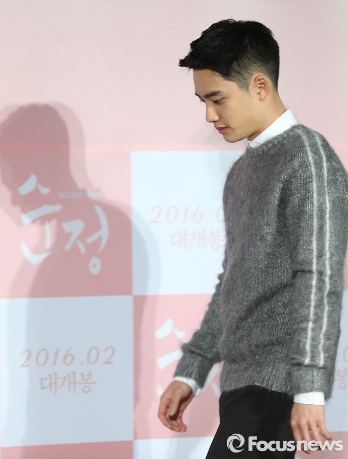 (서울=포커스뉴스) 4일 오전 서울 광진구 롯데시네마 건대입구점에서 열린 영화 '순정' 제작보고회에 참석한 배우 도경수가 포토타임을 위해 이동하고 있다.