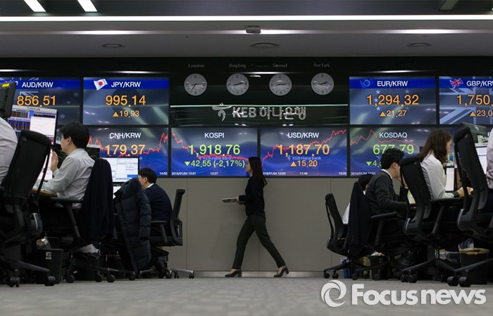(서울=포커스뉴스) 새해 첫 거래일인 4일 원·달러 환율이 중국 증시 폭락 여파로 15.2원 급등한 1187.7원에 장을 마쳤다. 이날 서울 중구 을지로 KEB하나은행에서 딜러들이 업무를 보고 있다.