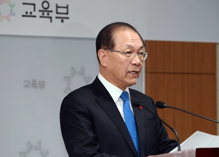 (세종=포커스뉴스) 황우여 사회부총리 겸 교육부장관이 4일 오전 세종시 정부세종청사 교육부 대회의실에서 열린 시무식에서 신년사를 하고 있다. <사진제공=교육부>
