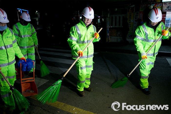 (서울=포커스뉴스) 신당 창당을 추진 중인 안철수 무소속 의원이 5일 오전 서울 영등포역 동부광장 인근에서 환경미화원들과 함께 새해맞이 청소를 하고 있다.
