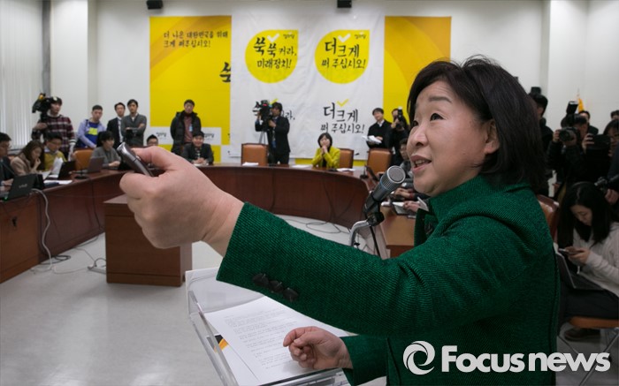(서울=포커스뉴스) 5일 오전 서울 여의도 국회에서 열린 정의당 20대 총선 기조, 캐치프레이즈, CI, 전략 캠페인 공개 시연회에 참석한 심상정 상임대표가 설명을 하고 있다.